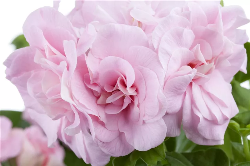 Zwischen den üppigen Flor passen nicht nur blühende Bindeglieder als Begleitpflanzen für Geranien. Da steht die große Welt der Gräser bereit. Zitronengras und Blauschwingel sind nur Beispiele. Aufrecht stehende oder geschmeidig überhängende Stängel, das ist Geschmackssache. Nun bleiben noch Bunt-Nesseln mit ihren individuellen Erscheinungsformen als Begleitpflanzen für Geranien und grüner Klee. Oder darf es noch etwas Besonderes sein? Da gibt es die wundervolle Schmuckblattgeranie mit ihren effektvollen Blättern. Die kleinen Blüten machen sich gegen den Flor der stehenden und hängenden Geranien recht bescheiden aus.